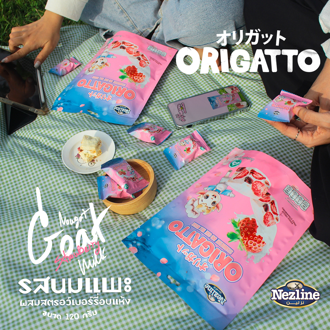 - นูกัตนมแพะผสมสตรอว์เบอร์รี่อบแห้ง นูกัต (Nougat) นิยมซื้อนูกัตเป็นของฝาก รสชาติอร่อย ได้ถึงนมแพะและผสานรสของรสสตรอว์เบอร์รี่ได้อย่างลงตัว